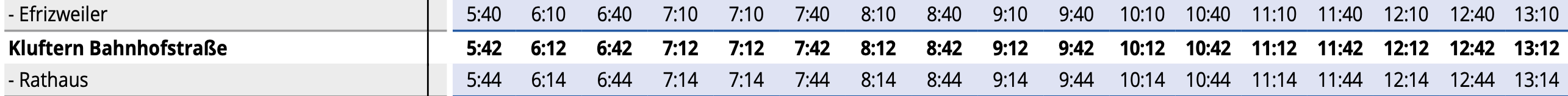 Buszeiten der Linien 11, 12, 12X