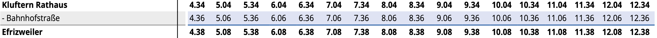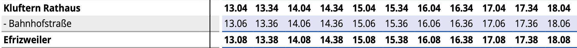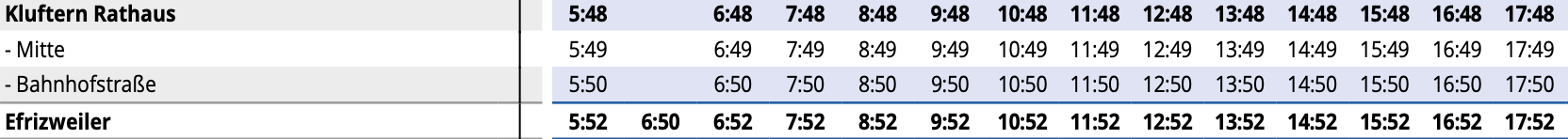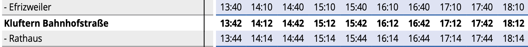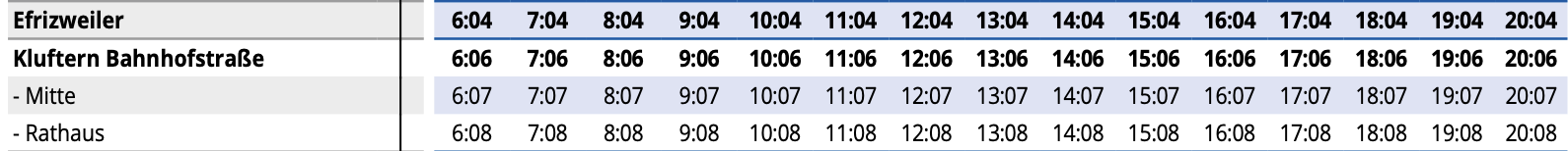 Buszeiten der Linien 11, 12, 12X